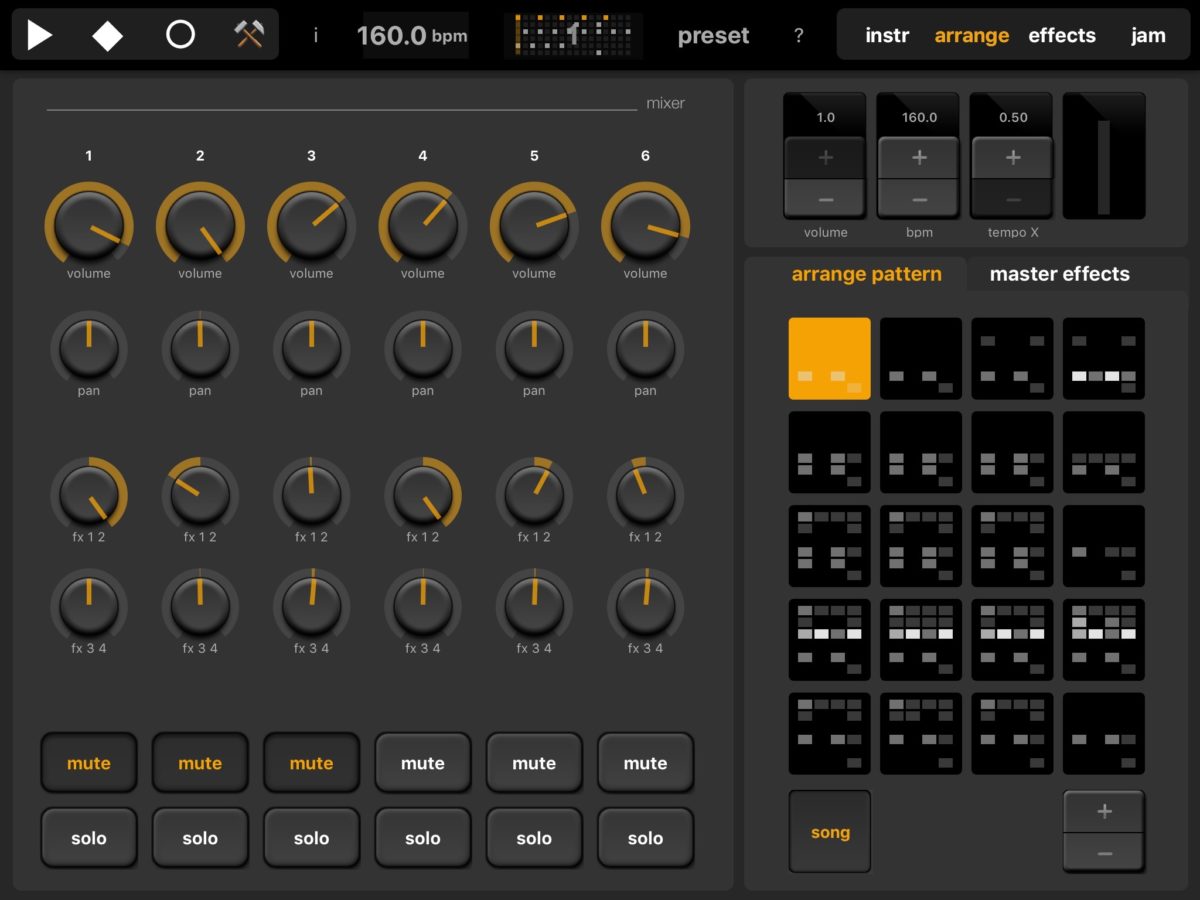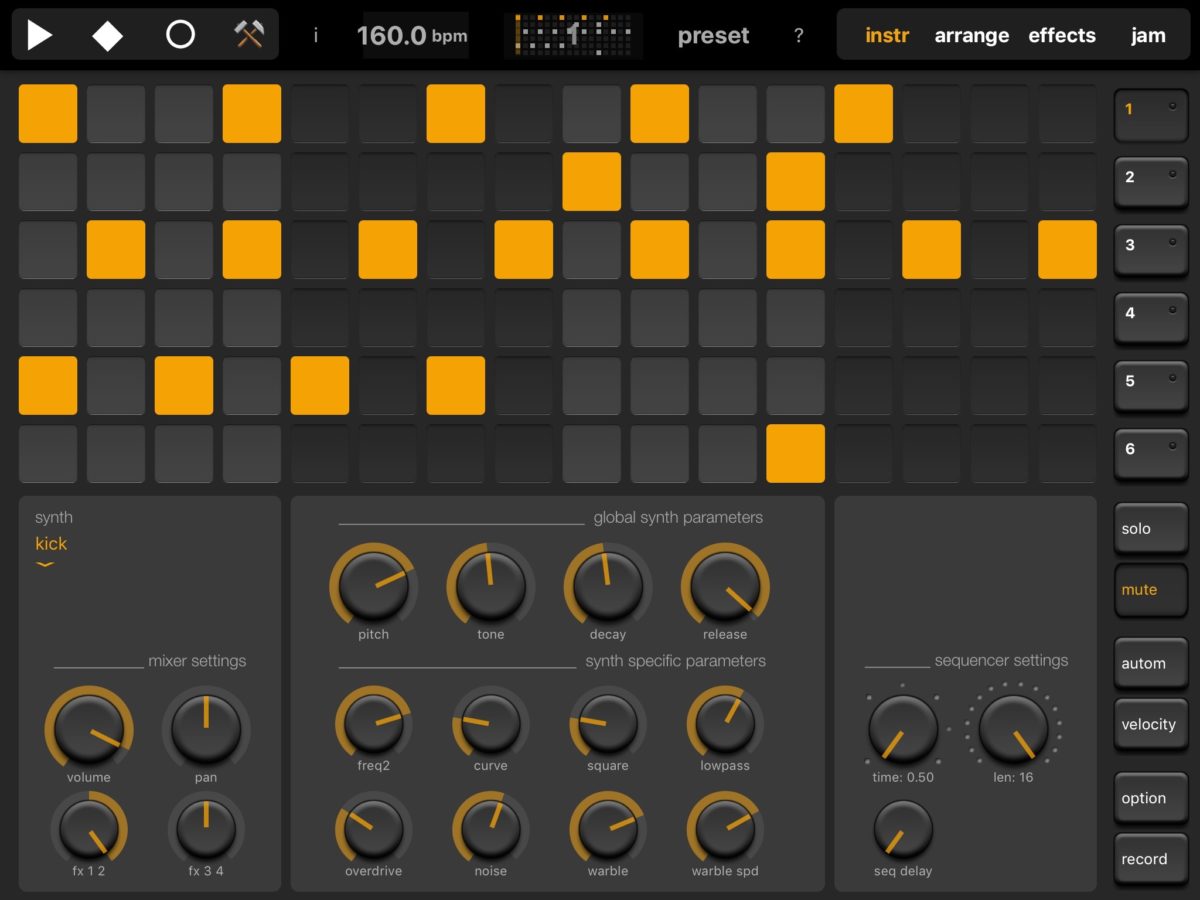 Elastic Drums is an iOS app with 6 channels of synthesized sounds, a step sequencer and 4 effect channels, all tweak-able in an elastic way.